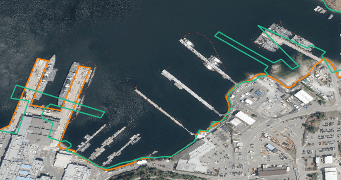 - Shorelines on First Nation reserve lands were not digitized out of respect for privacy, so those shorelines were excluded from the analyses. In some cases, the Federal Government reserve land boundaries were slightly waterward of the FAC (Figure 2). Unfortunately, for the communities of Oak Bay, Sidney and Cowichan Valley, these shorelines were not excluded from the calculations, resulting in an overestimation of ‘non-modified’ or ‘natural’ shoreline.