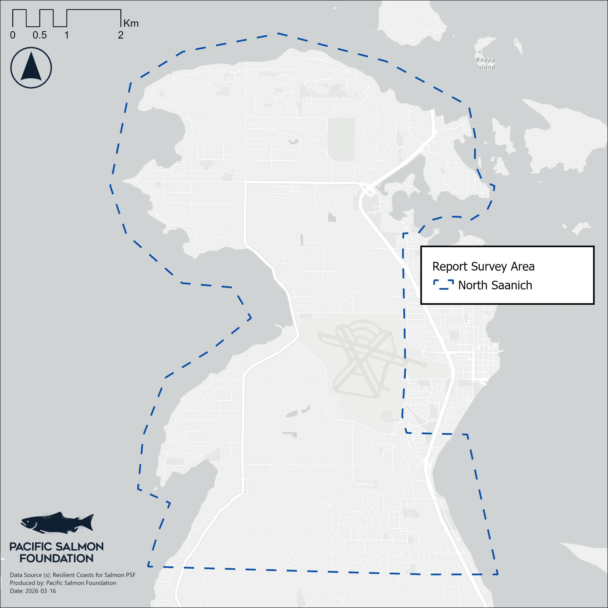 For the purposes of the Resilient Coasts for Salmon initiative, the North Saanich study area covers 39 km of marine shoreline, with data derived from imagery collected up to 2025.
